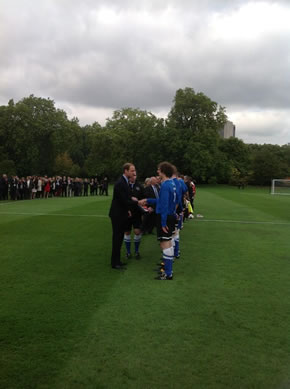 October 9, 2013 Chiswick Polytechnic FC won a right royal victory when they beat Civil Service FC 2-1 at Buckingham Palace (October 7th). The unique football match between two of England's oldest clubs - both based in Chiswick - was refereed by Howard Webb who handled the last World Cup Final. The Duke of Cambridge, who was instrumental in organising the match in his capacity as president of the FA, was on hand to meet the opposing teams in advance of the match and wish them luck.