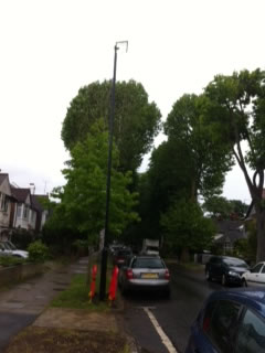 Cllr Ellar said Vinci-Ringway now had day-to-day operational control over the contract although councillors and council officers were monitoring performance. They were now coming to the end of the first six months of the contract and there was starting to "a visible impact on the quality of roads, pavements and lighting". "I am certain that the outcome of this massive investment will be a long term improvement but I understand that this level of change is something that has not been seen before and is at times unsettling for residents." A spokesman for residents in Park Road, which is a conservation area, said that as lead councillor on the £800 million PFI government grant project, the councillor needed to refer to the LBH 'Street Scene Design Guide' of 15th October 2012. (see www.hounslowhighways.org) "In Chapter 2, PRINCIPLES, the last section of paragraph 2 states very clearly, and I quote: 'All principles require the involvement of the community early on in the design process in order to achieve the aspirations of improved quality of life for the whole community in the London Borough of Hounslow'. "It would be good to hear from other councillors on this issue, so that we can move forward to find an alternative design of street furniture that would be more appropriate for Conservation Areas." The new street lamps are either 5 metre or 8 metres in height. It appears that the longer length ones are causing the most problems, particularly in Park Road because of the number of trees on the street. It is understood the Council arboriculturalist has recommended that four lamp standards be removed in Park Road.