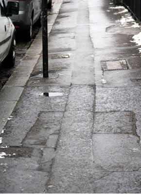 An example of the type of pavement residents do not want in Chiswick The idea of having the area declared a Conservation Area and thus exempt from the use of tarmac was discussed but the meeting heard that this was a lengthy process and the first works were already scheduled for early February. Cllr Paul Lynch said one difficulty with using the S106 funding would be that other projects would then lose out. It would be an unusual use of this money. (Under S106 of the Town and Country Planning Act 1990, as amended, contributions can be sought from developers towards the costs of providing community and social infrastructure, the need for which has arisen as a result of a new development taking place.) Cllr Sam Hearn said that once that £60,000 had been spent, what would happen about other roads. He was not keen on a short term solution. He felt Cllr Ellar had made a “big mistake”. Mr. Trevor Wallis, PFI ( Private Finance Initiative) Project Director said the marginal cost of replacing the asphalt with slab was £13 per square metre. He said the decision was a consequence of the 30% reduction in the Council grant to £350 million.
