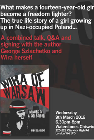 George, who was born in Chiswick but brought up in Ealing, will be speaking about the book at Waterstones on Chiswick High Road, on Wednesday 9 March at 6.30pm. The book, an account of his mother's fascinating but sad life, took him over three years to write. His mother became a soldier of the Polish underground army, adopting the pseudonym ‘Wira’ (pronounced Vera), believing she had to do her part with her nation under threat. Her mother discovered her secret – but there was no turning back, the Uprising began in August 1944 and Warsaw became an inferno.