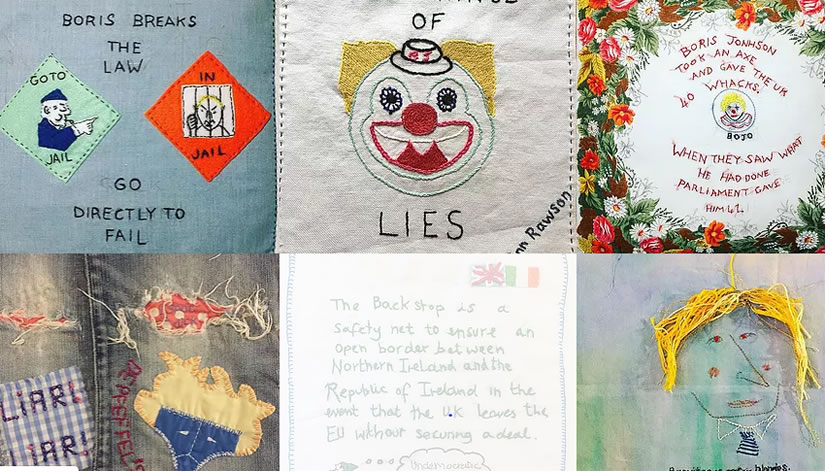 Holly Searle invites people to express their feelings about Boris Johnson on fabric