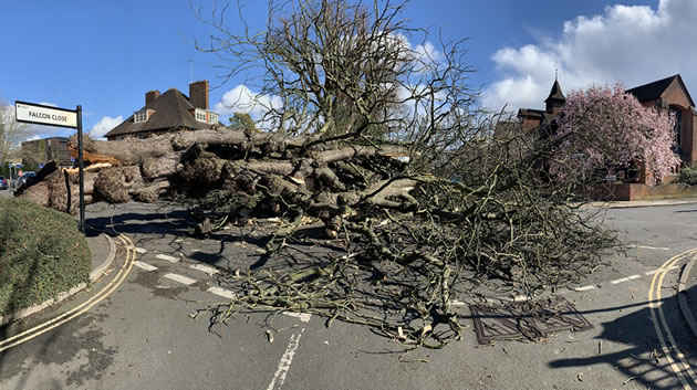 Sweet chestnut on Sutton Lane South brought down by high winds