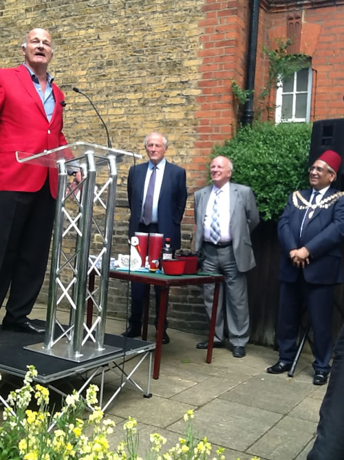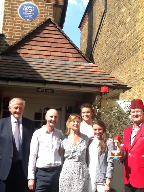 Then as everyone chanted the Tommy Cooper catchphrase-'Just Like That'- John Todd, Greg Dyke and Clive St James Greenaway pulled the rope from the balloons covering the Blue Plaque which is placed on the outside wall above the front door. You watch this on video from chiswickbuzztv