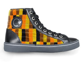 A Chiswick firm is to sell a unique brand of footwear at the Sunday morning Farmer's Market in Dukes Meadows (August 11). The casual boot is made from recycled tube and bus seat fabric and local commuters will instantly recognise the distinctive patterns. The brand, which is popular online, is part of the ABOVE+BELOW LONDON footwear line produced by local eco-design outfit; Creatively Recycled Empire Ltd.The company also uses upcycled nappa leather from a high street bank- a consignment of unwanted leather cheque-book covers which used to be given out as gifts.