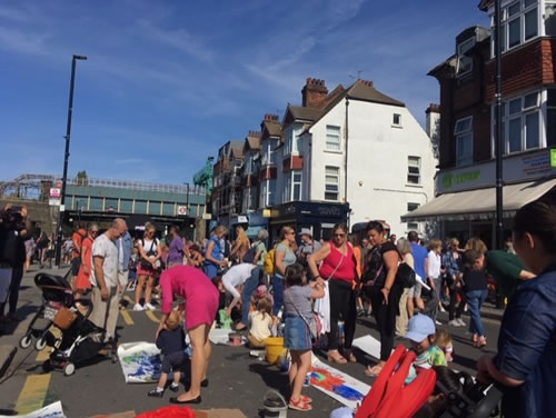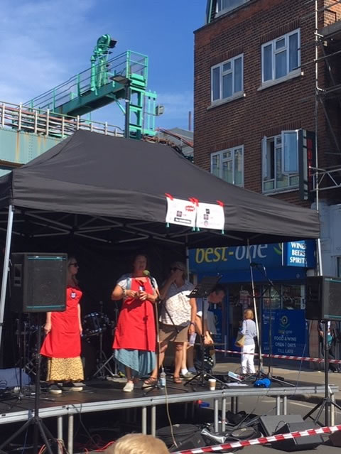 The organisers thank locals for their support The event was hailed as a great success with crowds of all ages visiting the stalls organised by The Cookbook Festival, Abundance’s partner in this street party,as well as huge queues for food provided by local suppliers. Covered tables were set down the centre of the street for communal eating with music from BGM, The Derivatives, Alistair Pope, Duffy & Bird. Apple pressing, cake decorating, painting for children, and tee shirt printing (Snappy Snaps) were just some of the activities. Children also enjoyed visiting the two vintage Green Line buses parked at the end of the street.