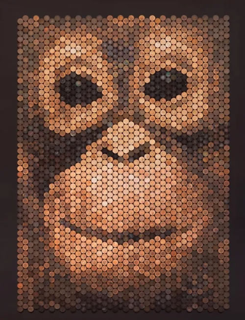 Indonesian rainforests are being cleared to create palm oil plantations. Our artwork was created to raise funds for the Sumatran Orangutan Society, whose message is ‘every penny counts’ in the fight to save the endangered animals and their environment. This artwork was created over several days in our studio opposite Chiswick town hall.
