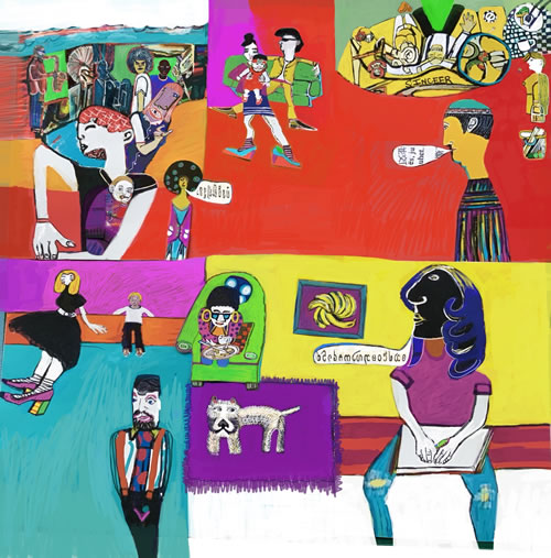 “It’s a London sofa, a London street the Thames at the top left. There is an audience, but it’s unclear – who is the entertainment? Are they communicating? Being understood? Or are they/we just shouting in a language known to no one else? I, for one, am curious.” www.sinceer.studio.