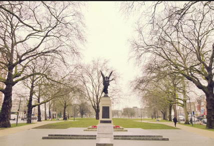 The image above is an example of a different style of memorial setting, in Shepherd's Bush, taken from the photographic collection in a blog by Frances M Thompson. The matter was last discussed at the CAF in January, and councillors suggested that it would be appropriate to consult on ideas and possibilities "very widely" with the community and stakeholders. They said it might be more appropriate to work to a longer timeframe than the centenary of the start of World War I in 2014 to "ensure the right, rather than a rushed decision". November 7, 2014
