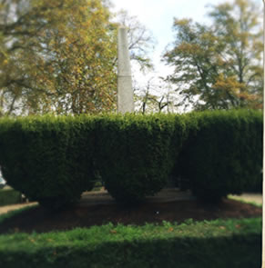 The reason for the removal of the upper tier Yew trees is because the trees have outgrown the site causing restricted access to the Memorial upper platform. Hounslow Council has said it is aware of the significance of the yew trees in both the landscaping character and contribution to local heritage of Turnham Green. With the loss of the yew trees, the council welcomes views on how the setting of the War Memorial can continue to be a fitting place for remembrances. The Friends received approval for a new design and seating for the memorial which is on the east side of Turnham Green. There was no proposal to alter the memorial itself but the space around it was to be landscaped with seating. The idea was to provide a place for private contemplation. However, some locals opposed the design project claiming it would fundamentally alter the 'special sense of place' of the memorial. You can read about that controversy here The War Memorial, installed in 1921, is an obelisk in unpolished Aberdeen granite and is set with bush shaped Yew trees surrounding the obelisk, with a low mature Yew hedge and metal fencing at the boundary.