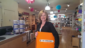 Whisk Cookshop in Devonshire Road has announced the winner of its Chiswick Book Festival competition. Anne Gill, the office administrator of Chiswick Pier Trust, is pictured in the shop with her prize, a Le Creuset Grillit pan.