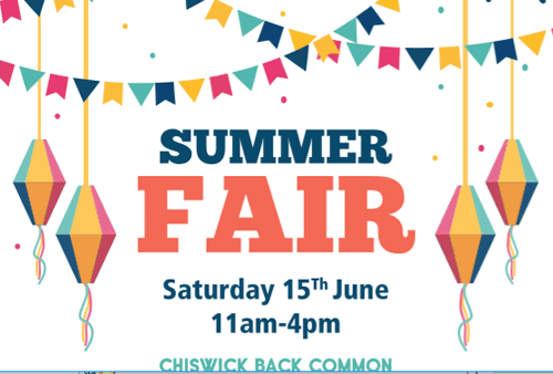 The William Hogarth School's SUMMER FAIR will take place on Saturday 15 June from 11am - 4pm on Chiswick Back Common (by the Rocks Lane sports facility).