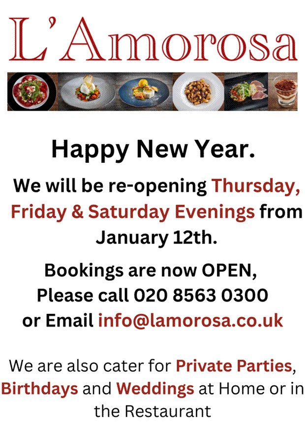 Open again Thurs, Fri and Sat evenings from 12th Jan (Ad)