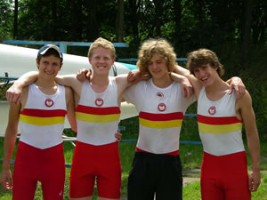 After a difficult season during which an important member of the crew was lost to injury the crew lined up for a very tense final selection race at the Junior National trials at the National Water Sports Centre in Nottingham over 1500m. The line up of six crews included Henley Rowing Club who won the National Junior Sculling Head in March and Windsor Boys School who won National Schools Regatta in May and defeated the TSS crew at Marlow Regatta the previous weekend. The selectors showed confidence in the TSS crew by seeding them to be in one of the central lanes with Windsor Boys School. Henley and TSS went out fast and at 500m were neck and neck, with Windsor Boys in close order a quarter of a length back. During the second five hundred Henley suffered for their early pace and all eyes were on Windsor who had made a decisive surge in the middle of the race the previous week at Marlow. The TSS crew however knew what to expect and dug in using sheer determination and skill to increase their lead to half a length. Resolving not to let Windsor back into the race the crew sprinted away over the last 500 meters to win by over a length. The crew will represent Great Britain in the GB v France match Sunday 12th July at Cardiff Bay regatta course. Each crew member has to make a contribution of over £300 and supply a blazer for their GB badge. John Lewis Partnership have very kindly supplied the Blazers shirts and made a donation towards travelling expenses. The crew is Sam Tuck, James Jarratt, Tom Eames and Aaron Shea. Chris Shea |