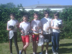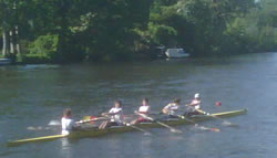 With not a little pressure to win their event, the J13 boys thrashed Walton and then Cranmore School (pictured left) to take a comfortable win in the coxed quad.