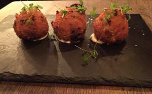 We chose starters from the Specials menu: one arancini with aubergine, mint and cheddar and the other roast Pecorino cheese with mixed beetroots. The arancini were perfectly cooked and the aubergine and mint added a more eastern Mediterranean flavour to this Italian standard. The roast Pecorino was a delectable thick chunk of molten cheese with mixed beetroot, rocket and dressing. We'd never seen cheese served like this before and have been missing out: it really was amazing.
