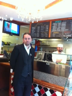 The fish and chip takeaway, the Cod Father, which was located on the ground floor, has now been closed and renovation has started so that the downstairs will now be part of Lara. The work is expected to be finished by the end of June, and they will be able to accommodate about 70 covers with plenty of space upstairs for private parties. Lara is an unassuming sort of place. The decor is a homely blend of exposed brick walls and wooden floors and is not flashy. There is a warm welcome and well-cooked, nicely presented food which is styled Mediterranean with a Turkish influence. When I visited recently there was a varied clientele, three people were dining alone and there were couples, as well as family groups. Our host Kamber (pictured above with the chef) greeted us warmly, insisting that we be seated at a table where we could watch the sunset.