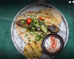 Thinking we should have something carnivorous, we chose lamb brochette which came served on flatbread with a tzakziki (yoghurt and cucumber). I was really pleased with the lamb as so often lamb on a skewer can be toothgrindingly chewy. This was really very tender, had been well marinated and I could have eaten twice as much.