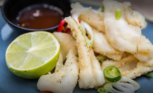 Another welcome addition to the menu is the fact that dishes are marked if they are gluten-free. This saves a lot of to-ing and fro-ing to the kitchen by the staff checking with the chef. Personally I would like to see a few more gluten free options -I'm guessing this could happen if substitutions were made, particularly in the Asian inspired dishes. We decided that four or five plates of food would probably suffice. We ordered the Mediterranean favourite Arancini, an Italian dish of risotto rice balls and mozzarella cheese, dipped in egg and breadcrumbs and deep fried. The exterior was crunchy and salty, which contrasted nicely with the rich, rice interior, and was balanced with the lemon aioli. A dish of Squid came lightly coated in salt and pepper breadcrumbs, fresh and slightly chewy, with a slight peppery aftertaste. It only needed a squeeze of of lime but there was also a sweet chilli sauce which came in a little ceramic bowl.