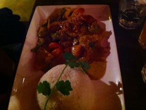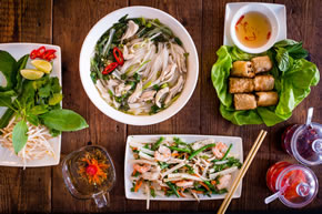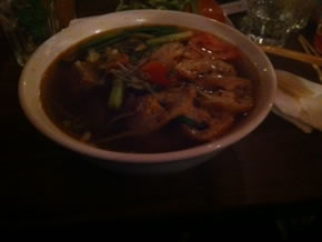 Pho house special My husband ordered the Pho house special -Pho dac biet- while I ordered Pho Xao, a dish of wok fried noodles with chicken and prawns. These are rice noodles with lemongrass, chilli, and Asian greens and come served with beansprouts and special sweet-sour Nuoc Cham sauce. My son ordered the Ca-ri, a Vietnamese curry with chicken, veggies and topped with nuts, served with 'broken' rice, which is basically steamed rice.