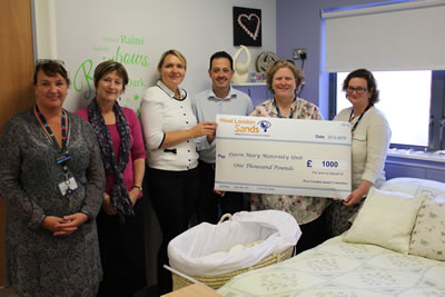 ‘A moment in our arms...a lifetime in our hearts’ West London Sands, a local group of the SANDS charity, is a voluntary organisation that offers support to anyone affected by the loss of a baby. The Butterfly Bereavement Suite, which has recently opened at the West Middlesex Hospital, will now benefit from a donation from the charity, following fundraising by parents who are members of the group. On Friday, (25th September), a £1,000 cheque was handed over to the Queen Mary Unit at the hospital. Paula Sagnier and Lynn Lacey, volunteers from WLS, have already helped Sally Kelly, West Middlesex Bereavement Midwife, putting up pictures and arranging the rooms to be as calm and tranquil as possible. The money from WLS will provide many of the extras such as tea and coffee making facilities and comfortable furnishings that will help to make the rooms in this Suite a place where parents can find the privacy and peace they need at this very sad time.