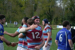 A beautiful day, a large crowd, and a place in London 1 at stake put the players of each team under great stress, and as a result the rugby was not quite of the high standard both teams are capable of. Nevertheless, it was nail-bitingly exciting, and with one minute of normal time left, extra time seemed inevitable. However... To start from the beginning. The home pack won the first scrum, but the Diss No.8 was grabbed by Chiswick captain and scrum-half Luca Vannini before he could get going. Chiswick heeled the ball, whilst retreating, at their first scrum, but their No.8, Sam Leslie-Miller, as he is wont, managed to get away with the ball, only to lose it in the tackle. After one abortive attempt to spread the ball wide, Diss attacked up the middle, using their forward strength to progress, and after five minutes they gained a penalty in front of the posts and went three points ahead. With most of the early possession, Diss tried hard to spread the ball across the pitch, but the Chiswick mid-field pair, Jon Gibson and Dan Godfrey, were tigerish in their tackles, and with the formidable support of flanker Riki Darroch and backs Tom Steer, Dan Sutherland and Joe Grindle, the home team lost ground nearly every time as their passes went further and further backwards. After twelve minutes, Chiswick were beginning to come more into the game, with Simon Hallett and Jon Joyce probing the home defence, and when they gained a penalty twenty metres in from the right touch-line, Hallett levelled the score with a good kick against the wind. With the Chiswick pack coming to terms with the home forwards in the scrums, it was only in the lineouts where Diss stayed on top. Their tackling remained solid, however, and few openings appeared on either side. Diss worked hard to get to the Chiswick 22, whereafter they could rely on their forward power to inch towards the line. Chiswick were penalised for collapsing a maul, but survived the ensuing onslaught, with Tom Shattock, holding grimly on to the ankle of the Diss lock, and Leslie-Miller, prominent in the defence. Diss pressure finally told, when a Chiswick forward got yellow-carded for lying on the wrong side: Diss opted for a scrum, and the disorganised Chiswick pack was pushed back and wheeled, allowing Diss to score a try, which they could not convert, in the right corner. Chiswick mettle was now fully tested, but their confidence was high and they survived a rocky first five minutes. Super-sub Jan Joubert had come on, and Gibson reinforced the scrums. Effective Chiswick tackling was now vital, and they succeeded in getting several turnovers by holding up a tackled player long enough for the referee to award them a scrum. Half-time arrived with no further score, and the momentum appeared to be with Chiswick. The second half was punctuated by two yellow cards, one for each team. Chiswick again survived their fourteen man period, with the aid of the hold-up turnover ploy. The Chiswick support play was immense, and coach Adrian Hoile could feel proud of the 100% effort being put in by the team he had built up during the season, with the fond memory of previous coach Rocky Skinner helping to spur them all on. The home yellow card was followed by a successful penalty kick by Hallett, and Chiswick remained five points ahead until the epic last five minutes. Diss did have one good break down the left wing, and it required an accurate tackle by Grindle to prevent a certain try. With time running out Diss managed a good break out from their own half, and set up camp in the Chiswick 22. Three times their pack got over the Chiswick line; twice they were held up, but the third attempt was successful. The try was wide out, however, and the kicker nervously pulled the ball well left of the posts. With extra time looming, Adrian Hoile was reluctant to put the Chiswick subs on, but it proved unnecessary, as Joyce brilliantly caught the Chiswick kick-off, and Chiswick rampaged down-field. Diss were penalised and Hallett waited for silence, and then bisected the posts, to complete a fantastic personal performance and send the Chiswick supporters into raptures of delight as a new vista beckoned. Chiswick team:- Chraplywyj, Dibble, Shattock, Joyce, Pickering, Adams, Darroch, Leslie-Miller, Vannini, Hallett, Steer, Gibson, Godfrey, Sutherland, Grindle; Lowe, Cooper, Poon