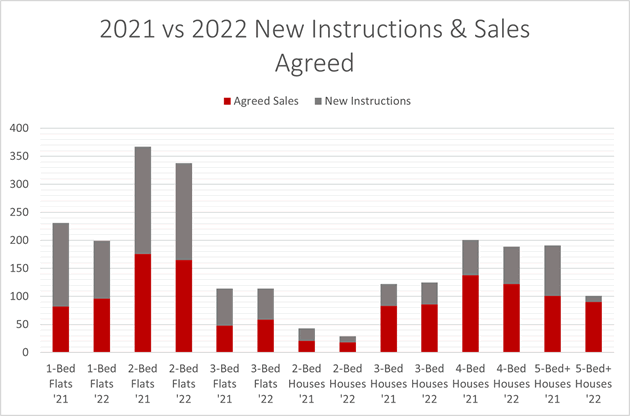 2022 Sales Review They say the property market is never a level playing field and that couldn’t be more true than in 2022. The year started off with good activity and strong buyer appetite, largely fuelled by the waning of Covid and Bank of England’s rate rise in December of 2021. This increase to 0.25% marked the end of a 21-month run on the all-time low rate of 0.1%, and further rises to 0.5% in February and 0.75% in March reminded buyers to find before being priced out of the market. As a result, the first quarter of the year – typically one of the quieter of the four as people tighten their belts to compensate for heavier spending over the festive period – was responsible for a strong 26.6% of the sales agreed in the year. The all-too-common shortage of long-term family homes in W4 saw the ‘sealed bidding’ trend that emerged in 2021 continue, strengthening capital value and carrying momentum into the Spring market. Despite the short-lived hesitancy provoked by Russia’s invasion of Ukraine in February and with March’s budget all but confirming that base rate would continue to rise – as it did by 0.25% both in May and June – to counteract inflation (forecasted at the time to peak in Q4 of 2022 at 8.4%(!)), Q2 remained consistent with the ‘conventional’ seasonality of Chiswick’s housing market. These three months generated 31.8% of the sales agreed in 2022; long-term family homes were still selling within days of marketing to the best bidder, and now flats that had adopted sensible pricing were also increasing in popularity. Furthermore, the incessant imbalance of supply and demand saw more strong capital growth notwithstanding interest rates returning to 1% for the first time since February of 2009. A graph showing Bank of England’s interest rate increases last year. This sentiment seemed to linger in an unusually hot Q3, both in the property market and the scorching weather! News of Boris Johnson’s resignation early in July, while significant, came as no surprise to many, and was largely overshadowed by rumours that previous inflation forecasts were wide of the mark. Consequently, we were to see the biggest rate rise since February of 1995 – not once, but twice, on the 4th of August and 22nd of September, just sixteen days into Liz Truss’s seven-week cameo in office. Naturally, there was a rush to try and lock in contextually favourable fixed rates prior to these rises, reflected in the fact that 26.1% of the year’s sales were agreed in the summer, despite the usual seasonal distractions of school holidays and warm weather. Truss’s plans of tax cuts and increased borrowing saw the pound take a steeper drop against the dollar. By the close of the quarter, the dollar sat at 1.07 to the pound – down over 20% on its January value. As a result, we saw some reintroduction of foreign buyers who capitalised on excellent conversion rates. With buyer confidence eroding and affordability slashed, activity appeared to drop off as we entered Q4. Rishi Sunak’s appointment as Prime Minister at the end of October saw a reversal of many of his predecessor’s policies and very much confirmed that there would be no shortcuts (or tax cuts!) in the journey out of this recession. Another record-breaking rate rise of 0.75% on the 3rd of November – the most significant since October of 1989 – proved to be the final nail in the coffin, as the nation turned its attention to the festive period and the atypical winter World Cup.