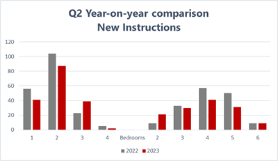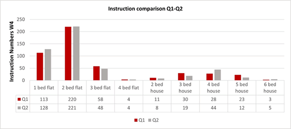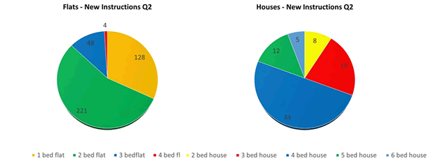 * * * * * * * * * Lettings Review Q2 2023By Katherine McDowall — Lettings, Andrew Nunn & Associates Unsurprisingly, given the continued supply and demand imbalance, the market remained robust in Q2, albeit with a more considered audience, and rents continued to rise. Instructions The number of new W4 instructions in Q2 (489) was almost identical to that of Q1 (490). Naturally, flats dominated the instructions this spring, with just 18% (88) of new properties coming onto the market providing an option for those in search of a house.