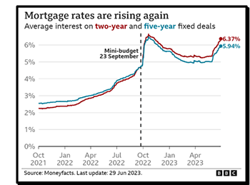 * * * * * * * * * Mortgage Review Q2 2023By James Muncaster — Director, Chagnon Financial Quarter 2 was a mixed bag for the mortgage market. The start of the quarter saw reducing interest rates, following the Mini Budget impact and the Bank of England forecasting an increase in UK growth. Fast forward to the end of the quarter and the threat of a peak Base Rate of 6.25% threatens to push the UK into recession! Average fixed rate mortgages across both 2yr and 5yr ranges have peaked to their highest for 7 months, with persistent inflationary pressure causing banks to forecast a higher Base Rate. This will impact clients coming off fixed rate mortgages in the short term but as inflation slowly comes under control, the likelihood of rate reductions will come through.