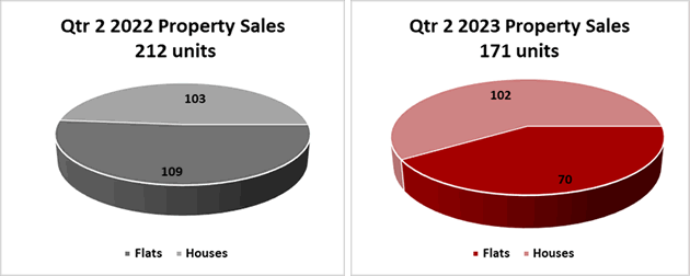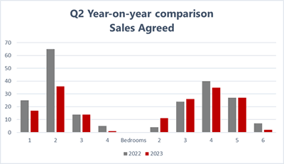 Instructions Our independently collated data shows that the total volume of new properties coming onto the market has slipped when comparing to the same period in 2022 as the sentiment continues to shift from the buzz of last year. It is no secret that W4’s excellent schooling, amenities and transport links make it an extremely popular area for families in search of a ‘forever’ homes – and, as we often tell buyers, “when they’re gone, they’re gone”… typically, for decades. Through these long periods of repayments and organic capital growth, house owners are more likely to have built sizeable equity in their properties, providing a cushion during turbulent economic times and meaning that fewer houses sold are ‘forced’ sales. Furthermore, we are undoubtedly now feeling the domino effect of the spike in activity of the last couple of years, with many families having brought their moves forward, or finally realised them after the uncertainty of Covid-19 had neutralised and with reports suggesting it was a good time to sell. As a result of these two factors, those searching for houses in Q2 of this year had 12% fewer options to choose from than Q2 of 2022. Instructions for flats also showed a deficit when comparing to last year, this time of 14%, as we see offices continue to encourage workplace working, making switching a flat for an affordable house further away from the city less appealing. Sales Agreed While new flat and house instructions have slowed at a similar rate, their sales numbers paint a slightly different picture. Long term family homes were most sought after in Q2 as clever money poured into bricks and mortar to serve as an inflationary hedge.