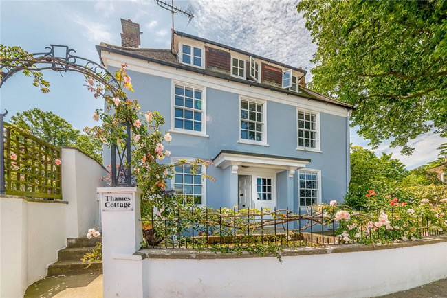 The standout feature of the quaint Grade II listed London home is its pretty blue façade, along with the exceptional far-reaching river views on offer. In former years, the lovely property was occupied by the Church and then in late Georgian times became the Star & Garter alehouse. Believed to have been built in the late 17th century, the four-bedroom detached property is now on the market for the first time in over 50 years. The home's dining room overlooks the river, while the reception room leads out on to the rear garden. Inside are two bathrooms and three reception rooms overall. Outside there are two gardens – one landscaped walled garden to the rear of the house and a small walled front garden. There is also a private garage attached to the home. This property is available for £2,600,000 through Knight Frank.