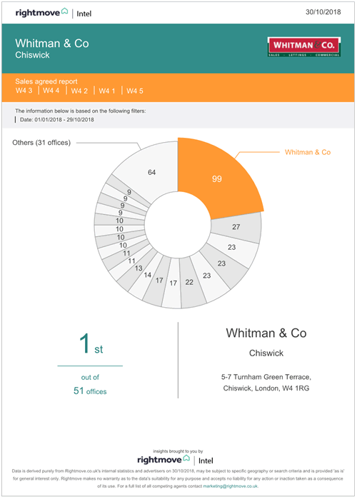 The Best Estate Agent Guide is a website (www.bestestateagentguide.co.uk) that lists the top estate agency branches in the UK. It was compiled by the Property Academy; an organisation set up to improve business performance and service standards in the property industry, with the support of Rightmove, the UK's leading property portal. 25,000 estate agents and letting agents and over 3 billion data points were analysed by Rightmove, looking at factors including marketing, property views, enquiries and performance to ascertain the best performing agents. In addition, the Property Academy carried out 50,000 mystery shops to assess customer service levels. This is the biggest assessment of the sector ever conducted and we are delighted to have been recognised following such a rigorous examination. Whitman and Co's Chris Chalmers describes what this means to him: “This award means the world to us, as a local independent estate agent we thrive on offering an outstanding level of customer service and I believe this coupled with our brilliant, open and knowledgeable team has resulted in us achieving these fabulous results. We will continue to keep up the good work!” This remarkable award coupled with the latest Rightmove data certainly proves that Whitman & Co maintains its position as Chiswick's leading estate agent: The latest Rightmove report proves that Whitman & Co agreed 99 sales this year to date v's the next closest competitor who has agreed 27 sales. We continue to thrive despite the unstable property market because we have an abundance of registered buyers across all price brackets from £300k to in excess of £3 million which means we are able to spend time building chains with great success. The ceaseless effort that our team puts in every day has meant that despite the market we are on course for a record year. If you're thinking about selling, buying or letting a property then please get in touch we will be very happy to provide you with our advice and you can be confident that you're dealing with the best estate agent in your area: 02087478800.