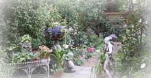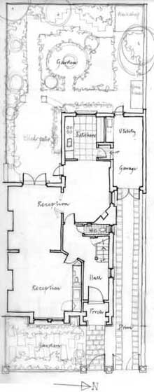 tiled. It is planted with climbers, evergreens and shrubs. The side