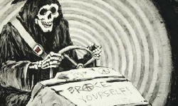 They were previously called 'Exit Through The Gift Shop' and although the name may not have brought the band massive musical success it has brought them unexpected riches. The group's members, singer Nathalie Zalewska, guitarists Mark Atkinson, Kevin Wilson and Darren Moore and drummer Simon Duncan all locals, are sitting on a small fortune after being given an original work by the street artist Banksy. The painting (below) which is the size of a double bed and shows the grim reaper riding a dodgem has been valued at £200,000.
