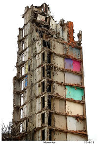 "The council are redeveloping the area, the block is half down our flat on the 10th floor has gone. It was my home, I had a lovely childhood and am feeling very weepy and nostalgic. We moved in when it was new and it was great because it had an inside toilet and hot water!" In response Jon published some of his images and wrote: "Sue, touched by your story and openness, and also struck by the shapes and colours, I decided to explore. I hope these images are not too painful for you and hopefully you will find interesting."