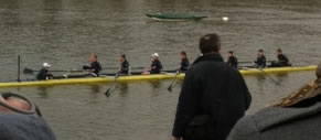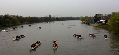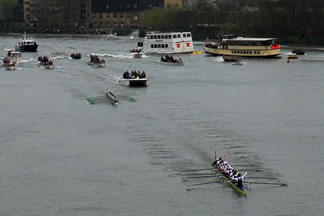 Oxford won the toss and their President Ben The crews warmed up downriver below Putney Bridge before moving up onto the start as 5pm approached, and as the flotilla of launches jockeyed for position on the incoming tide umpire Rob Clegg dropped his red flag and the 157th Boat Race was under way. Cambridge rated 47 strokes a minute on the Middlesex station against Oxford at 46, with honours even as both crews reduced their rates approaching the boathouses on Putney Embankment. The Dark Blues had the edge after the first minute, still rating 39 with Cambridge at 38, but approaching Fulham football ground it was Oxford who were warned twice by the umpire. Despite the blip their cox Sam Winter-Levy took them back on course and they maintained the advantage, and with both crews rating 35 Oxford reached the first timing position at the Mile in 3 mins 49 secs, one second ahead of the opposition. It was to no avail - the margin between the two crews was six seconds at Chiswick Steps, which Oxford reached in 10 mins 44 secs, looking increasingly confident as they capitalised on their advantage. Cambridge were rating 34 along Corney Reach and gathering themselves for one final push as the final Middlesex bend was in their favour. The Light Blues upped the rate to 36 strokes a minute as the Mortlake Brewery came in sight, but it was too late. Oxford were able to hold them off with ease, crossing the line in 17 mins 32 secs to take a four length verdict over Cambridge, who were 12 secs adrift at the Finish.