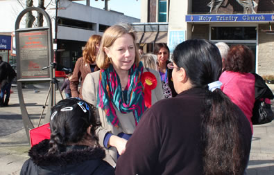 Mary Macleod MP with students Mary said:, “I was impressed by the political awareness, maturity and confidence shown by the young women from my constituency. They suggested some very creative and innovative ideas on how to improve their local area and I hope we can work together to implement some of these in the future. It is important that we continue to work to increase the representation of women in Parliament and I hope that in a few years some of these young women will return as MPs”. Seema Malhotra, MP for Feltham & Heston and Cllr Ruth Cadbury, took to Hounslow High Street on Saturday to ask local women what issues are important to them. They were joined by female Council candidates and local Labour Party activists. Ms Malhotra said; “We heard from many local women who are going through a tough time right now. The number of women in Hounslow who are out of work has rocketed under this Government with the local female unemployment rate nearly doubling from 5% to 9.5% in just two and a half years. “David Cameron just doesn’t get it because when it comes to women, it’s out of sight out of mind for this out of touch Government.”