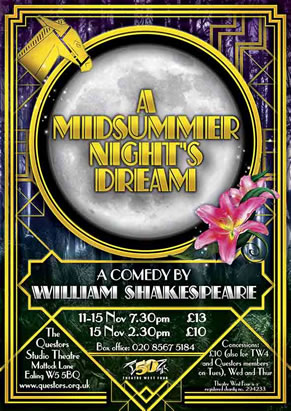 Theatre West Four is rounding off a glittering golden anniversary year with Shakespeare’s enchanting and comical tale of love and magic, delusion and illusion. The play will be performed at the Quester's Theatre from Tuesday 11th to Saturday 15th November, including a Saturday matinee. (Questors Theatre, 12 Mattock Lane, W5 5BQ) One of Shakespeare’s best loved and most accessible plays, the story is opens on the eve of the nuptials of Theseus, Duke of Athens and his Amazonian bride, Hippolyta, but quickly moves to focus on the forbidden and unrequited love of four young ‘Athenians’, whose hasty decisions find them lost in an enchanted wood at the mercy of Faerie mischief. At the same time a long and heated war is raging between the Oberon and Titania, King and Queen of the Faeries, wreaking havoc upon natural order of the mortal world. Bumbling along into the story come a band of rural working men and women who, in their sincere-hearted innocence, decide to perform a play for the Duke’s nuptials and meet in the wood to rehearse becoming entangled in the magical mayhem with extra-ordinary consequences. These threads of mortal and magical mishap entwine themselves around each other – will they ever find their way back?