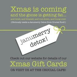 The 3 and 5 day detox packages start on a Monday, running through to Wednesday and Friday respectively. Please note orders need to be received at least 3 days prior to the start of your detox. Detoxes are available to collect from The Hogarth Health Club, Chiswick during club opening hours or can be delivered free to the following postcodes - W3, W4 W6, W12, SW13 and SW14. For deliveries outside these areas please contact us. Detox Gift certificates can be purchased from the Crucial Café at the Hogarth, or by email. Further information and to book online www.crucialfood.com, or drop us a line on mailus@crucialfood.com .