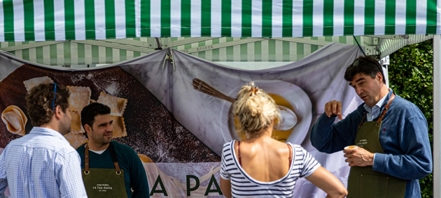Buying direct, means you can find out how your food is produced. Ask March House Farm about their native breed; cattle, sheep, pigs and turkeys. The farm is a model of sustainability powered by a large solar array and a biomass boiler using woodchip from the farm and local woodland management projects. The best reason to shop with them though, is the excellent quality of the meat. It's always worth a chat with Hook & Son who bring raw milk and milk products from their herd of Fresian Holsteins, all reared from cow families that have been on the farm for generations. Animal welfare is paramount, the cows produce 50% of the milk that more intensively managed herds do, but for Hook & Son that's fine, if it means happier cows. You can bring your glass bottles back to be re used. The market sells fruit and farm pressed juices from Ringden Farm's orchards at in East Sussex, they also bring the most delicious soft fruit on behalf of neighbouring farms. An ever-changing range of seasonal homegrown vegetables and salad is provided by Ted Dawson's farm near Boston in Lincolnshire, picked every day for its freshness, plus some high-quality exotics bought in. Ted also has a regular spot at Borough Market. Organic bread and pastries are made with love and care by Astons bakery and the most delicious fresh filled pasta and sauces by La Tua a family firm that also supplies fresh pasta to some of London's best restaurants. The Pasta at the market is completely fresh, so has to be eaten within a few days, but that isn't usually a problem!