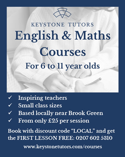 | At Keystone Tutors Keystone has put a lot of thought into the way the lessons have been designed and each course is led by an experienced, trained and inspiring tutor. Class sizes are limited to 8 to ensure that students get plenty of individual attention. Whilst maintaining the highest standards of academic rigour the lessons have been designed to be as engaging as possible. For example our Year 5 English course is based around the River Thames. The lessons range from analysing William Wordsworth's sonnet Composed Upon Westminster Bridge to exploring themes in The Wind in the Willows . Get the FIRST LESSON FREE with the discount code “Local”. Prices start at just £25 per session Location: 5 Blythe Mews, W14 0HW See a full list of our courses on our website: www.keystonetutors.com/courses Give us a call on 0207 602 5310 to find out more!