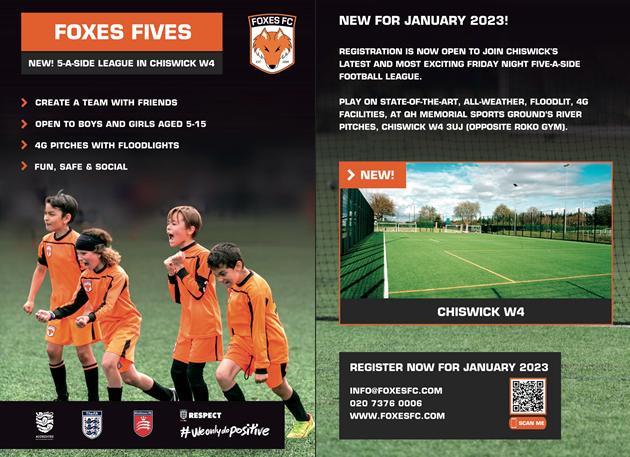 A wonderful opportunity for teams of boys and girls - aged 5 to 15 - to join a NEW and exciting Friday five-a-side football league in Chiswick.