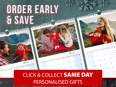 Photo calendars are really popular at Christmas, printed with 12 or more photos from throughout the year. The really nice advantage of this product is it has two functions: firstly as a calendar but also after the month has passed the photo can be cut out and kept as it is printed on proper photo paper. We are offering a 3 for 2 deal on calendars until December 10th.