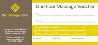 Give the Gift of Good Health with a Gift Voucher from the Massage Centre. We offer: Sports, Remedial, Deep Tissue, Swedish, Relaxation, Pregnancy, Indian Head and Reflexology Massage. Our team of highly trained & experienced therapists will tailor the treatment exactly to meet the needs of your loved one. See our 5 star reviews from Chiswick W4 readers |